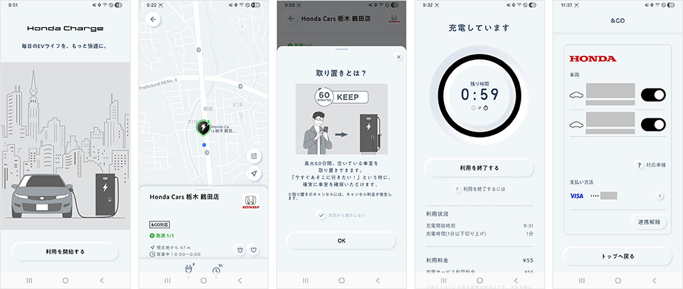 スマートフォンアプリ「Honda Charge」で一括管理、シームレスな充電体験を