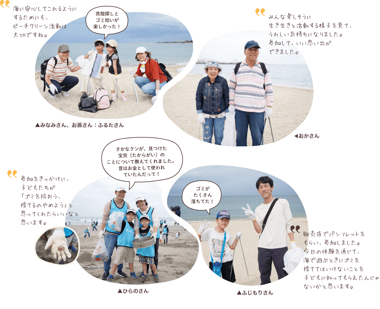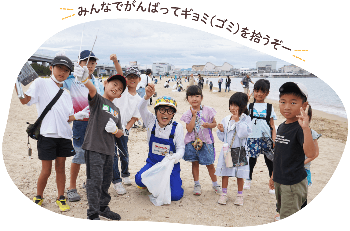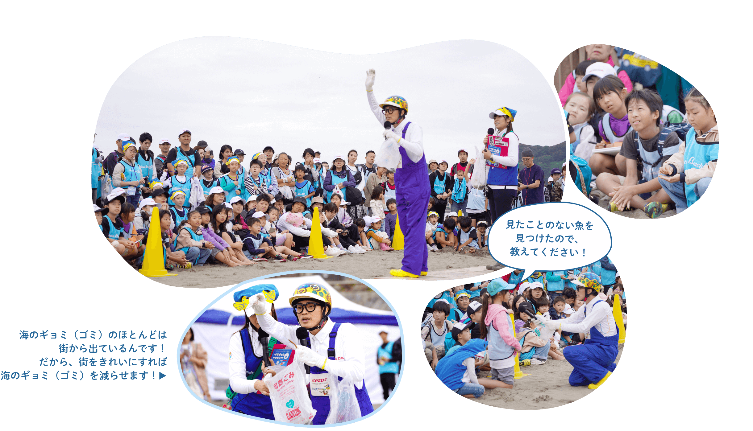 共感が広がることで「参加しよう」「続けていこう」との気持ちが生まれ、海もキレイになっていきます。さらに、日常で出るギョミ(ゴミ)を減らしたり、分別を徹底したりと、