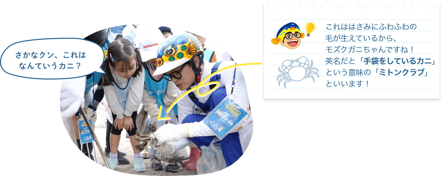 海をきれいにしながら潮風にあたり、波の音を聞き、いろんな生き物を見て、ギョ感(五感)で感じる。その体験が、自然の大切さへの気づきや、喜び、知的好奇心につながってくると思います。