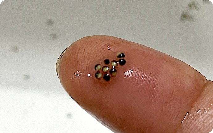 1回に出てくる卵は10粒ほど。これを何度も繰り返します