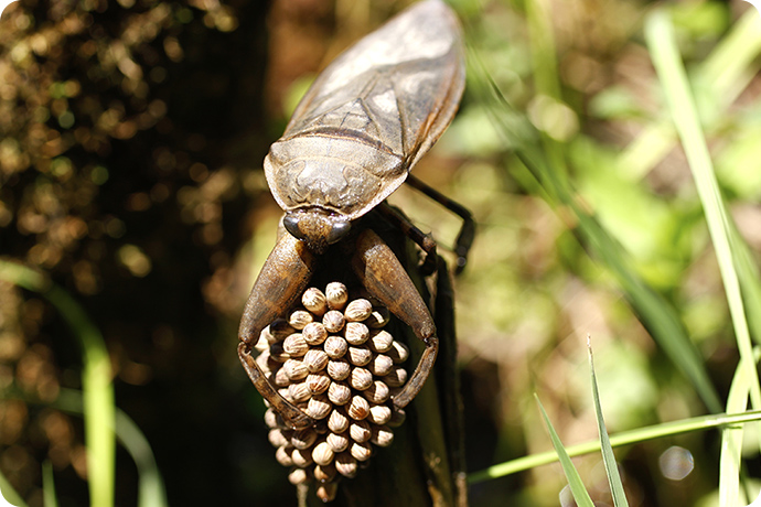 卵を産んでくれたメスを別の水槽に移し、ふ化までオスだけにしました。以前メスが自分で産んだ卵をかきむしり、全てを水に沈めて殺してしまったことがあったからです。一方、タガメのオスは卵を敵から守ったり、カラカラにならないように水をかけたりして大切に育ててくれます。