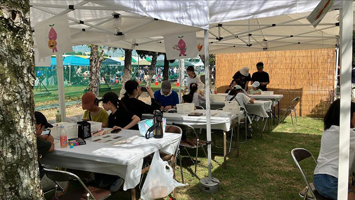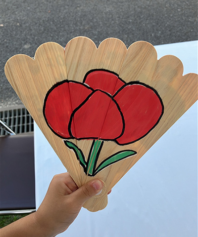 今回は100名近くの参加がありましたが、完成後はヒノキの間伐材で作られた扇子から扇ぐたびにヒノキの良い香りが漂ってとても癒されました。参加者からも「いいにおい~」という声をいただき、多くの方にイベントを楽しんでもらえました♪