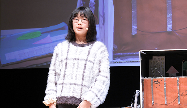 普段、私たちが気づかないようなところに着眼点があって、それを真剣に解決しようとする姿を見させていただき、すごく刺激になりました。新しいものを考えるだけでなく、形として表現し、発表するところまで含めて、このような機会があることは、子どもたちにとってとても良い経験になるなと感じました。これからも、ものづくりを楽しんでほしいと思います。