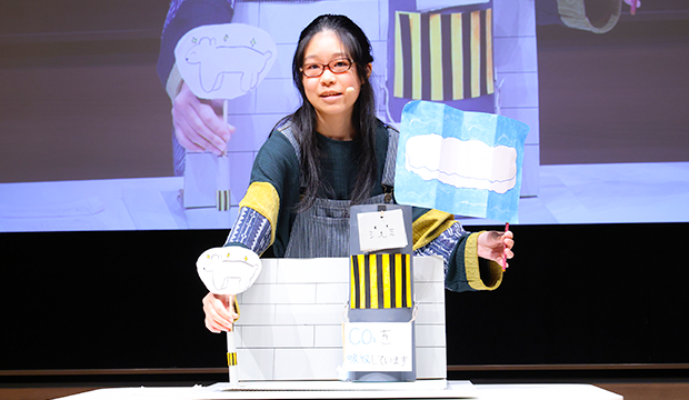 少し緊張した表情を見せながらも、子どもたちは自分の順番が来るとしっかりと前を向き、立体作品を使いながら一生懸命にアイディアを説明していきました。