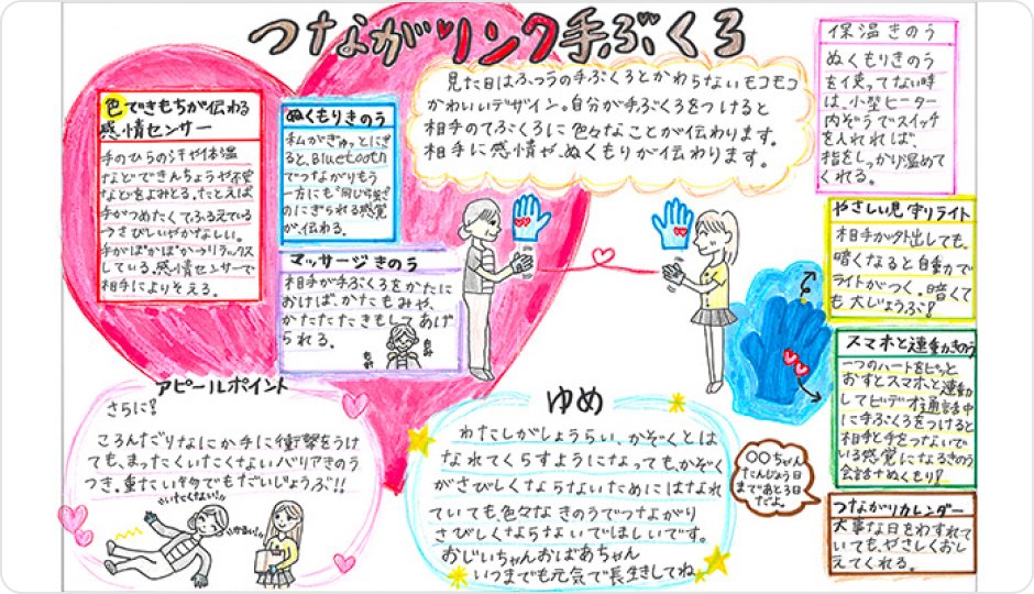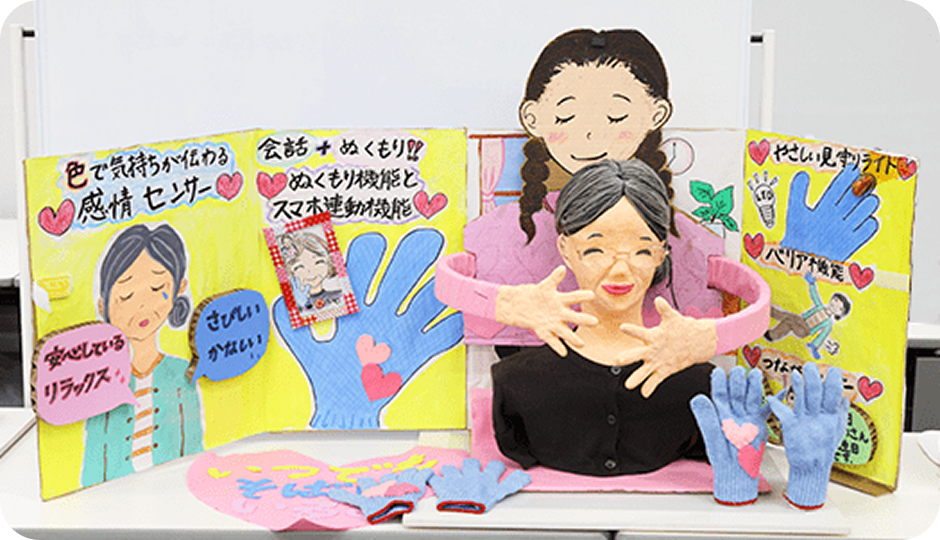 私は今、おじいちゃんとおばあちゃんといっしょにくらしています。私がしょうらい、おじいちゃんとおばあちゃんとはなれてくらすようになっても家族がさびしくならないために、思いつきました。