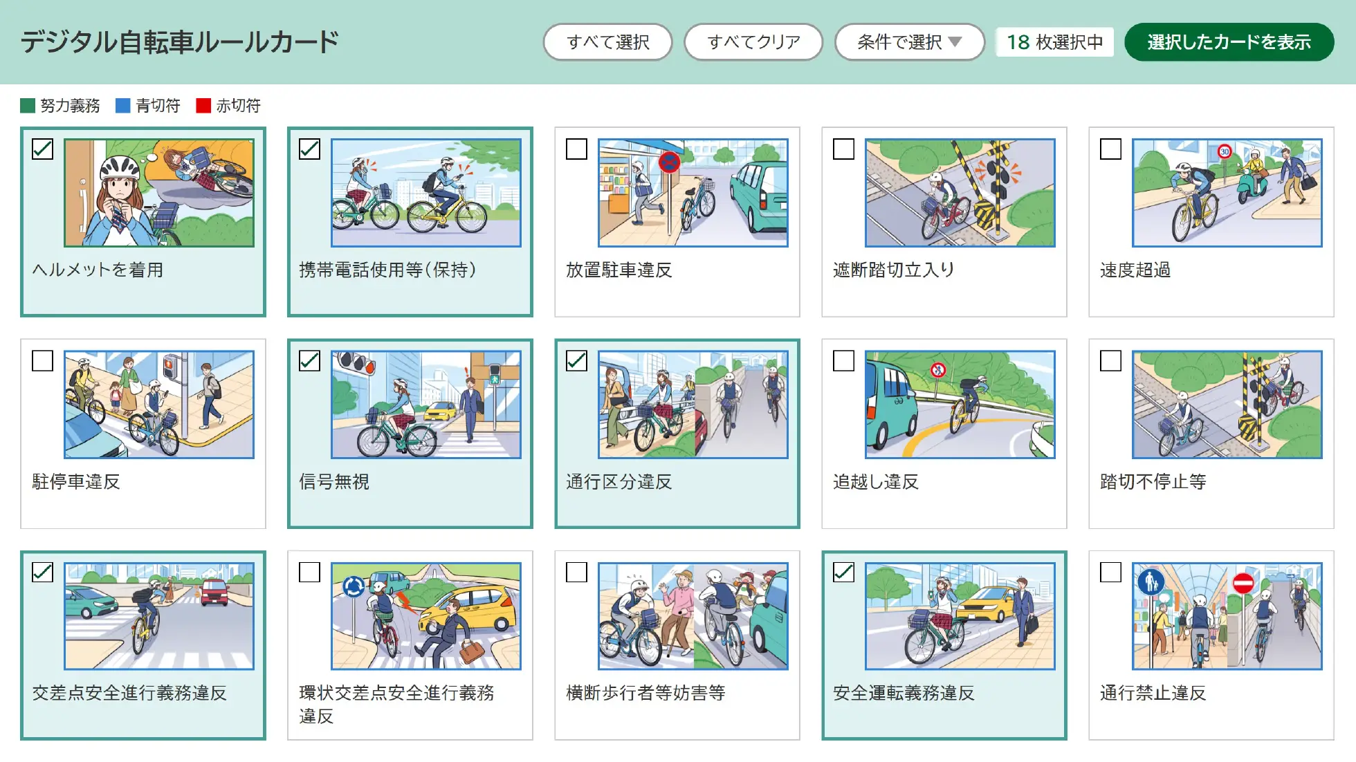 違反行為ごとのカードから、指導するカードを選択