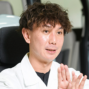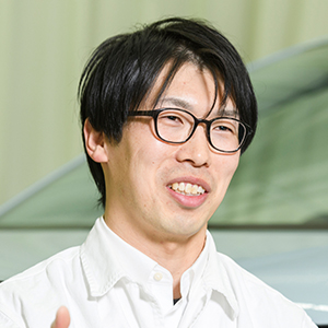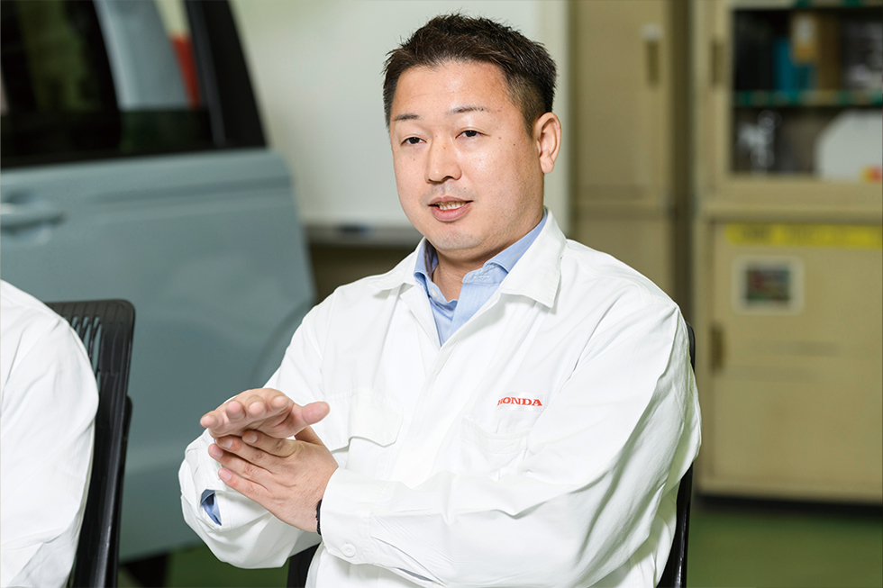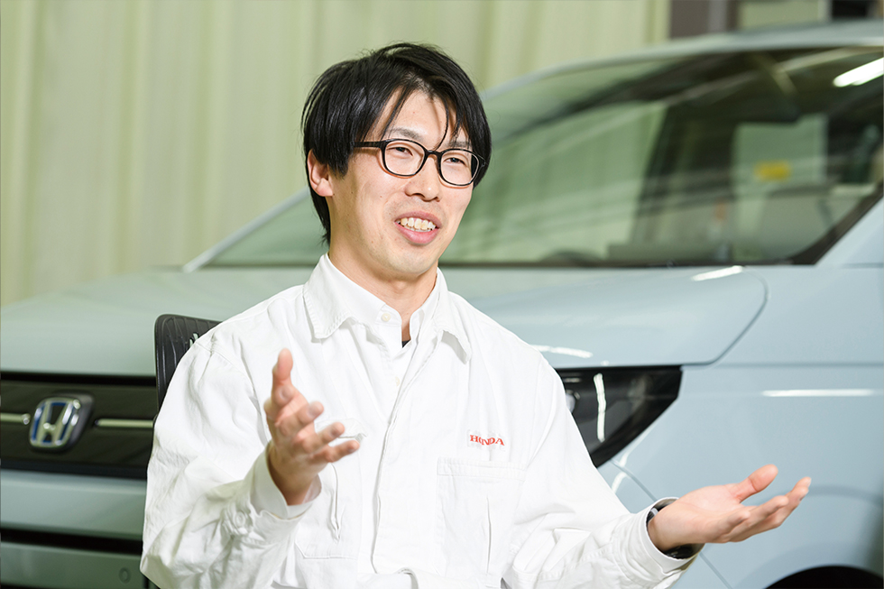 アシスタントチーフエンジニア加子坂 篤志さん - 2007年入社。材料開発部門でシート表皮開発に携わった後、2012年にシート設計部門へ。N-VAN、フリードなどをこれまで担当。