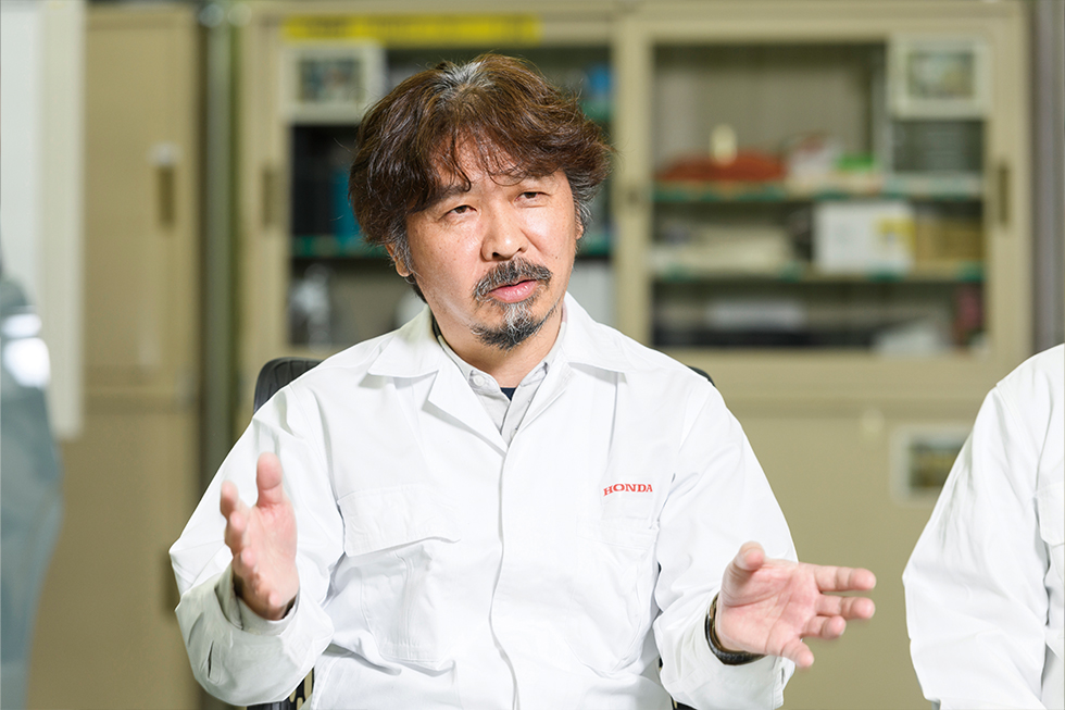 アシスタントチーフエンジニア佐野 浩司さん - 1989年入社。鈴鹿工場勤務を経て、先進開発、そして衝突安全の部署に従事。頚部傷害の研究・対策のスペシャリストとして活躍。