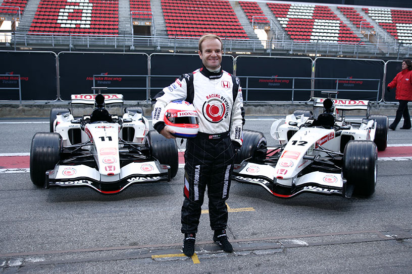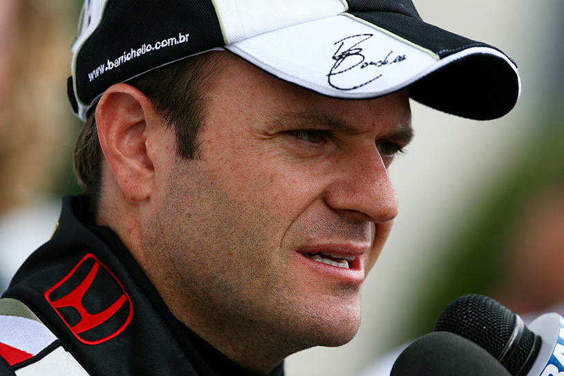 1972年ブラジル・サンパウロ出身。父と祖父も名前がルーベンスであることから、「ルビーニョ(小さなルーベンス)」と呼ばれ、レースキャリアを通じてもニックネームとなった。6歳の頃に母方の祖父からカートをプレゼントされ、9歳になる81年から本格的にカートレースを始める。ブラジル選手権王座5回を始め国内カートレース選手権で圧倒的な戦績を収め、89年にフォーミュラ・フォード・ブラジル選手権で四輪デビュー。90年に渡欧し、フォーミュラ・オペル・ロータス・ユーロシリーズ参戦初年度でチャンピオンに。91年にイギリスF3選手権王者、92年国際F3000選手権でランキング3位となり、93年ジョーダン・グランプリからF1デビューを果たす。F1参戦初年度第3戦ヨーロッパGP(ドニントン)では、雨のなか一時2番手を走行し注目を浴び、94年第11戦ベルギーGPでキャリア初のポールポジションを獲得。97〜99年スチュワート・グランプリを経て、2000年からフェラーリに移籍。ミハエル・シューマッハーのチームメイト役をこなしながら、第11戦ドイツGPで初優勝。02年と04年にはシューマッハーに続きドライバーズ・ランキング2位に輝く。06年にはホンダに移籍、ブラウンGP、ウイリアムズを経て11年いっぱいでF1を引退する。F1引退後もインディカー、ル・マン24時間レース、IMSAスポーツカー選手権、ブラジル国内のストックカーレースなどで活躍。24年もストックカー・プロシリーズ第7戦ベロオリゾンテのスプリントレースで3位入賞を飾っている。