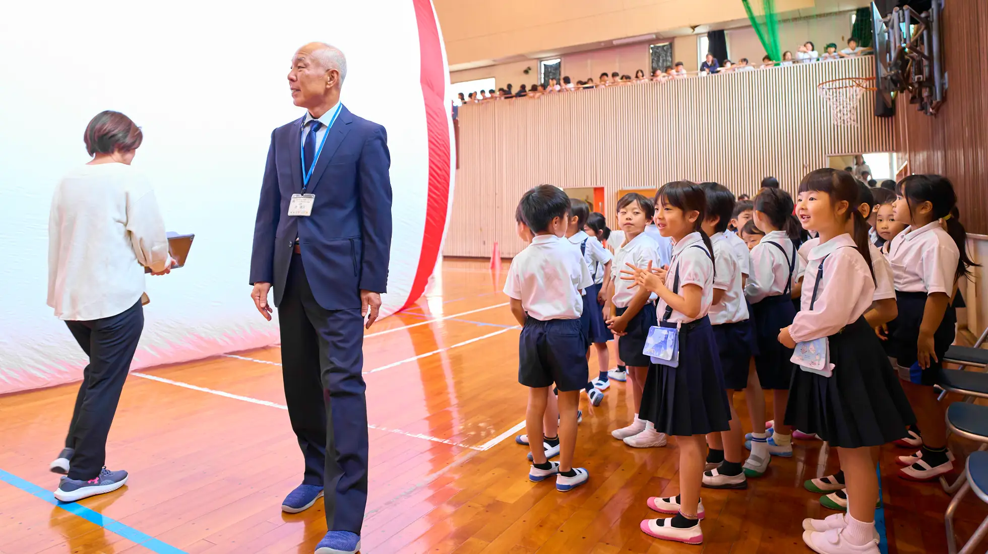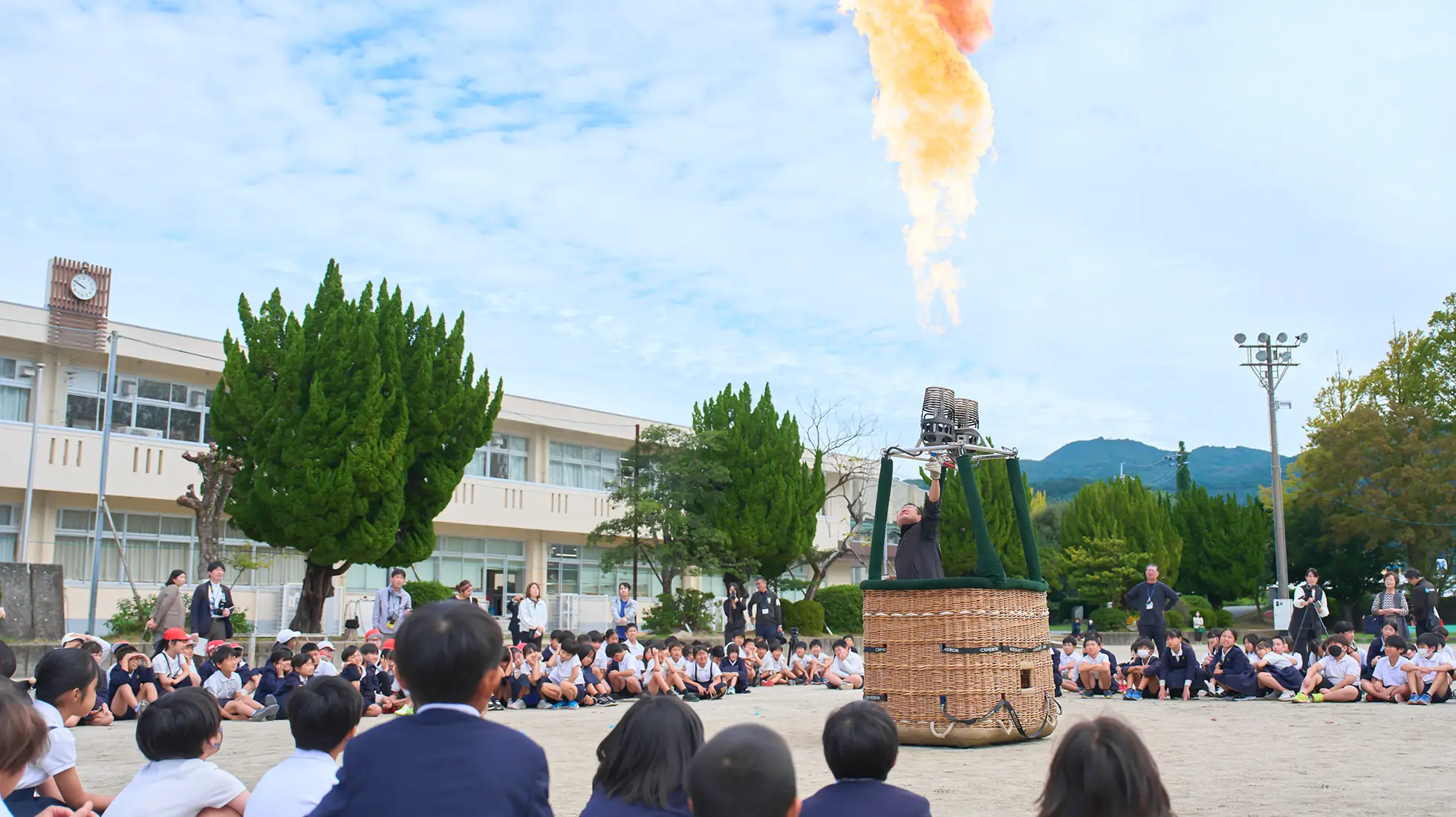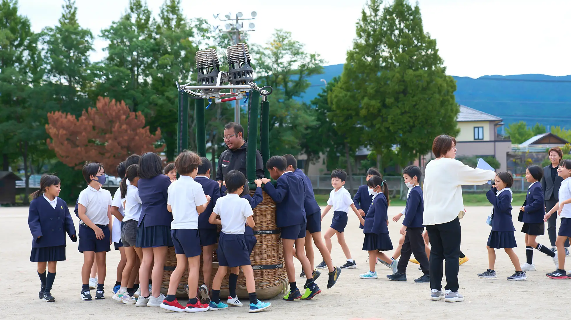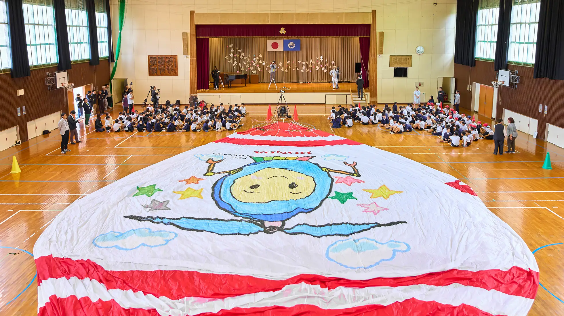 Hondaは、そんな思いで浜崎小学校でのお披露目式典を開催。当日は風の影響で校庭での機体の立ち上げではなく、体育館で膨らませるお披露目となりましたが、参加した皆さんは「熱気球の機体の中に入る」という貴重な経験ができました。