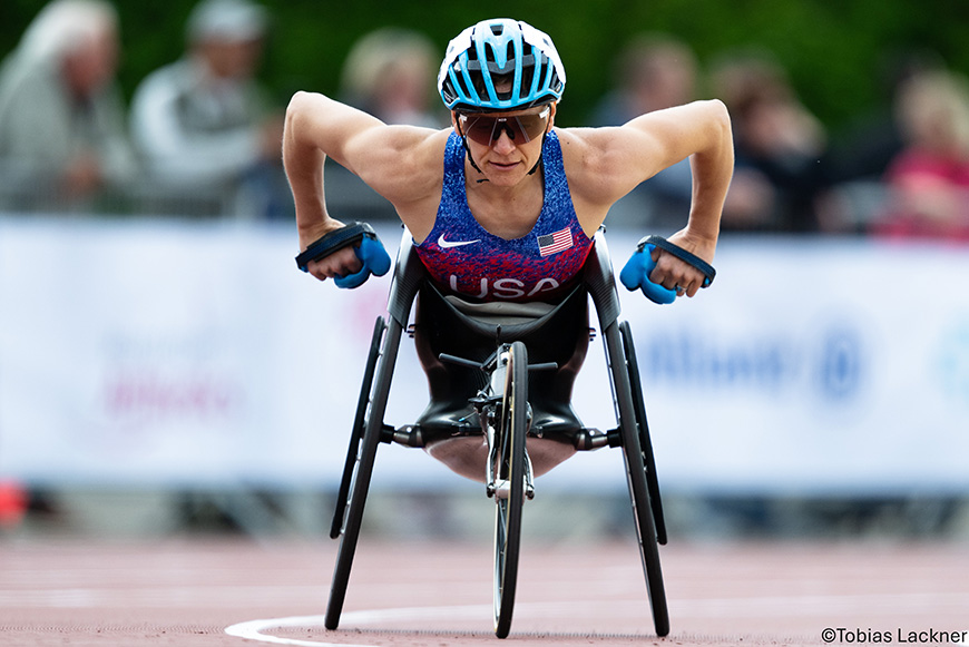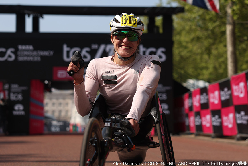 私は世界最高のレーサー(車いす)を手にしていると思っています。今日のレースもきつい風を苦にせず、フラットな路面にマッチしていて、すごくいいフィーリングでした。