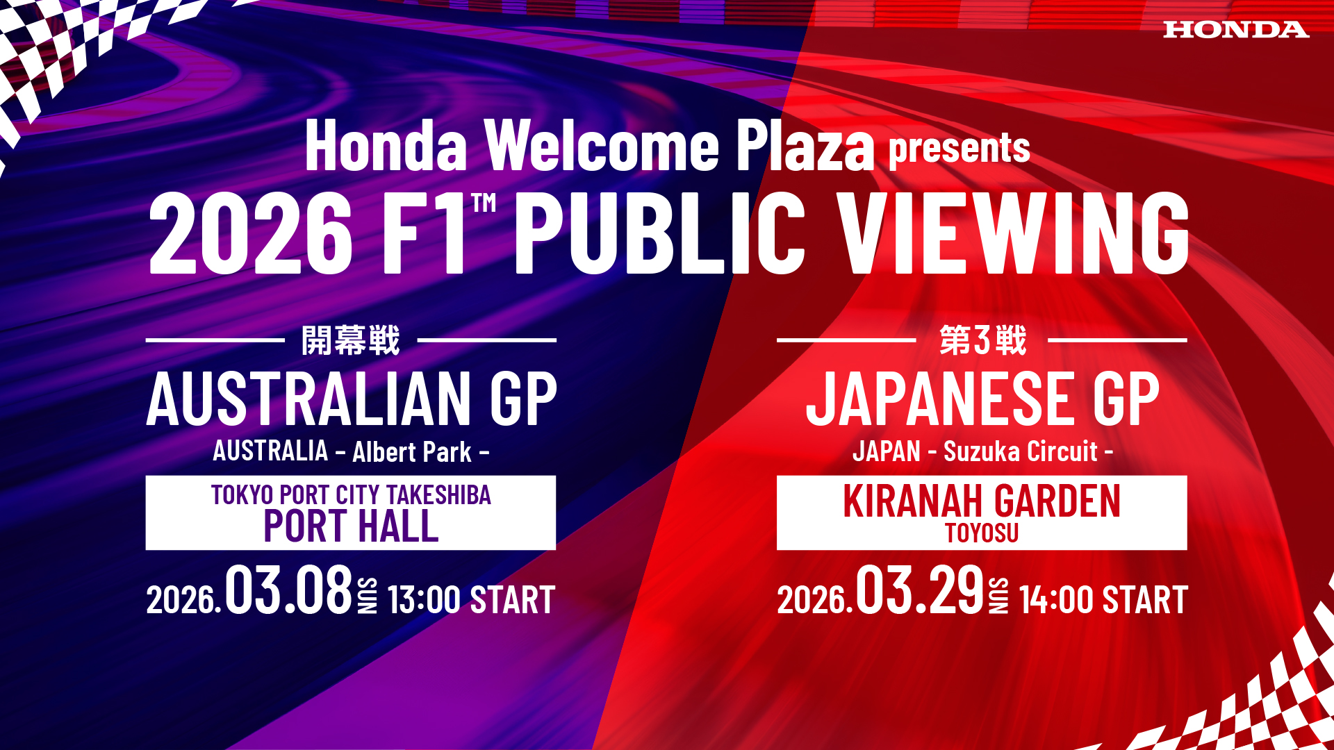 2026年シーズンのFORMULA 1™ オーストラリアグランプリおよび日本グランプリ決勝レースの