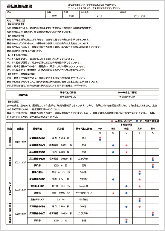 製品の特長:運転能力評価サポートソフト