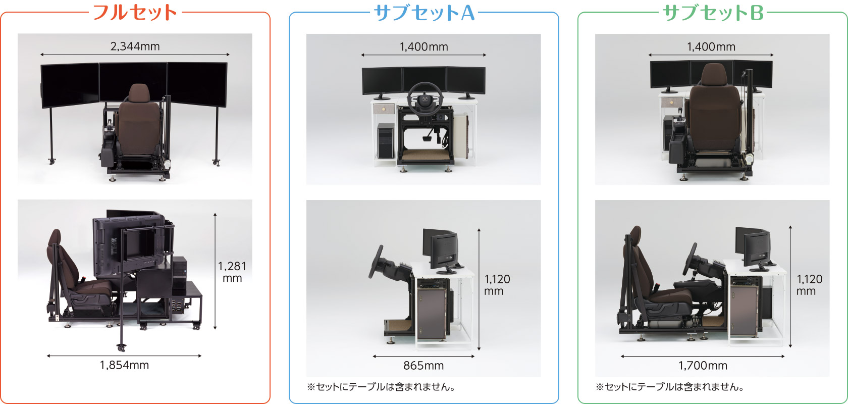 *サブセットA・Bの外形寸法は[幅]1,200mm×[奥行]580mm×[高さ]750mmの机に設置した場合の目安の寸法です。
